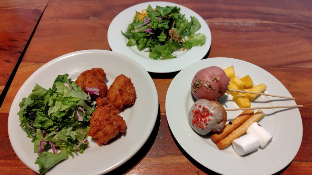 サラダ、から揚げ、ポテト、カレーといったものまであります