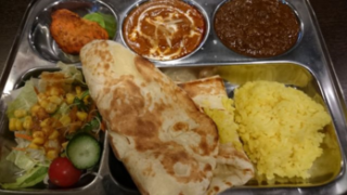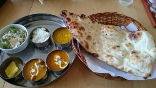 カレー2品、サラダ、ナーンorライス、ドリンク、サモサ 1280円(税別)